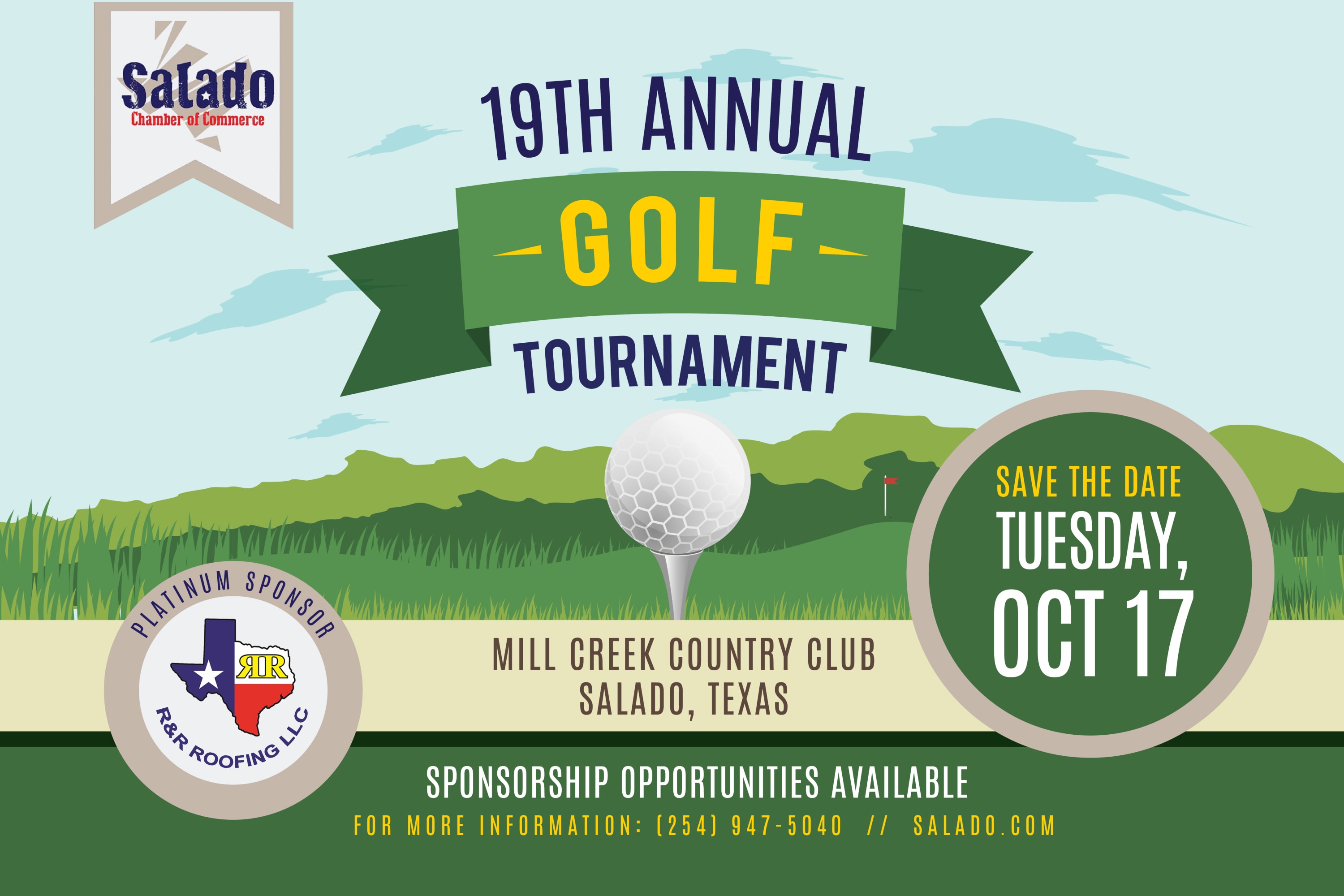 The 19th Annual Salado Chamber of Commerce Golf Tournament will be at Mill Creek Golf Course on Tuesday, October 17th, 2023!