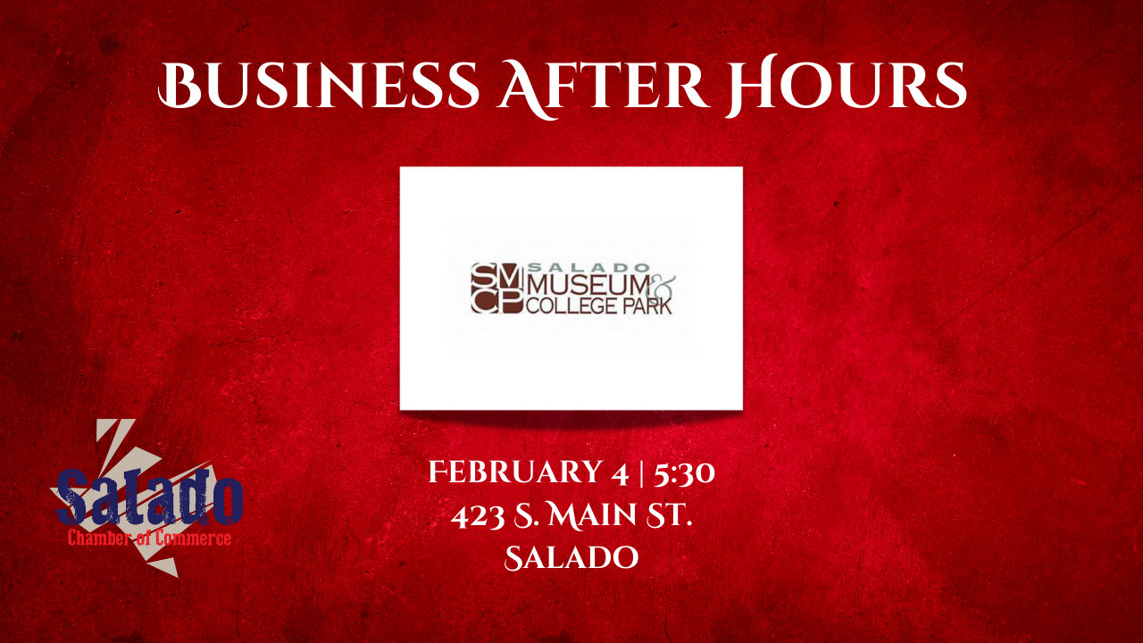 Join us for February Business After Hours sponsored by Salado Museum & College Park. The event is Tuesday, February 4, 2025 from 5:30 - 7:00 p.m. Business After Hours is an opportunity for Businesses to develop new business relationships in a relaxed, social environment by joining other busy professionals after hours. This event will be full of fun, food, and networking!