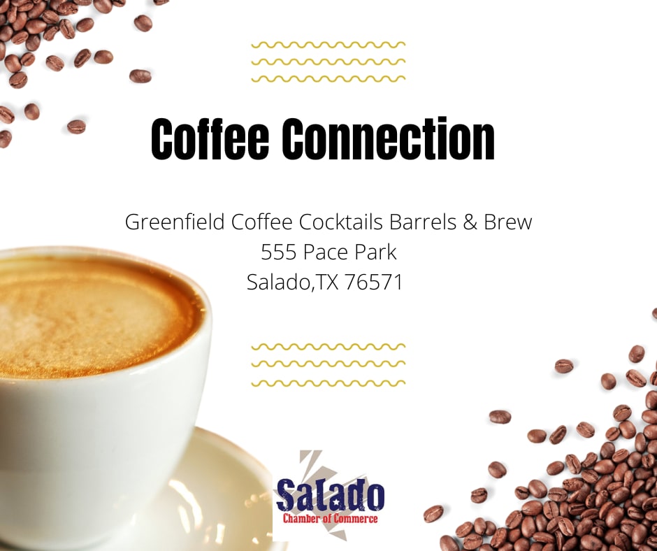 Join us for the February Coffee Connection. Coffee Connection is the Salado Chambers informal morning gathering that provides members with the opportunity to grow their network, expand their business connections, and discuss important topics in a small group setting.