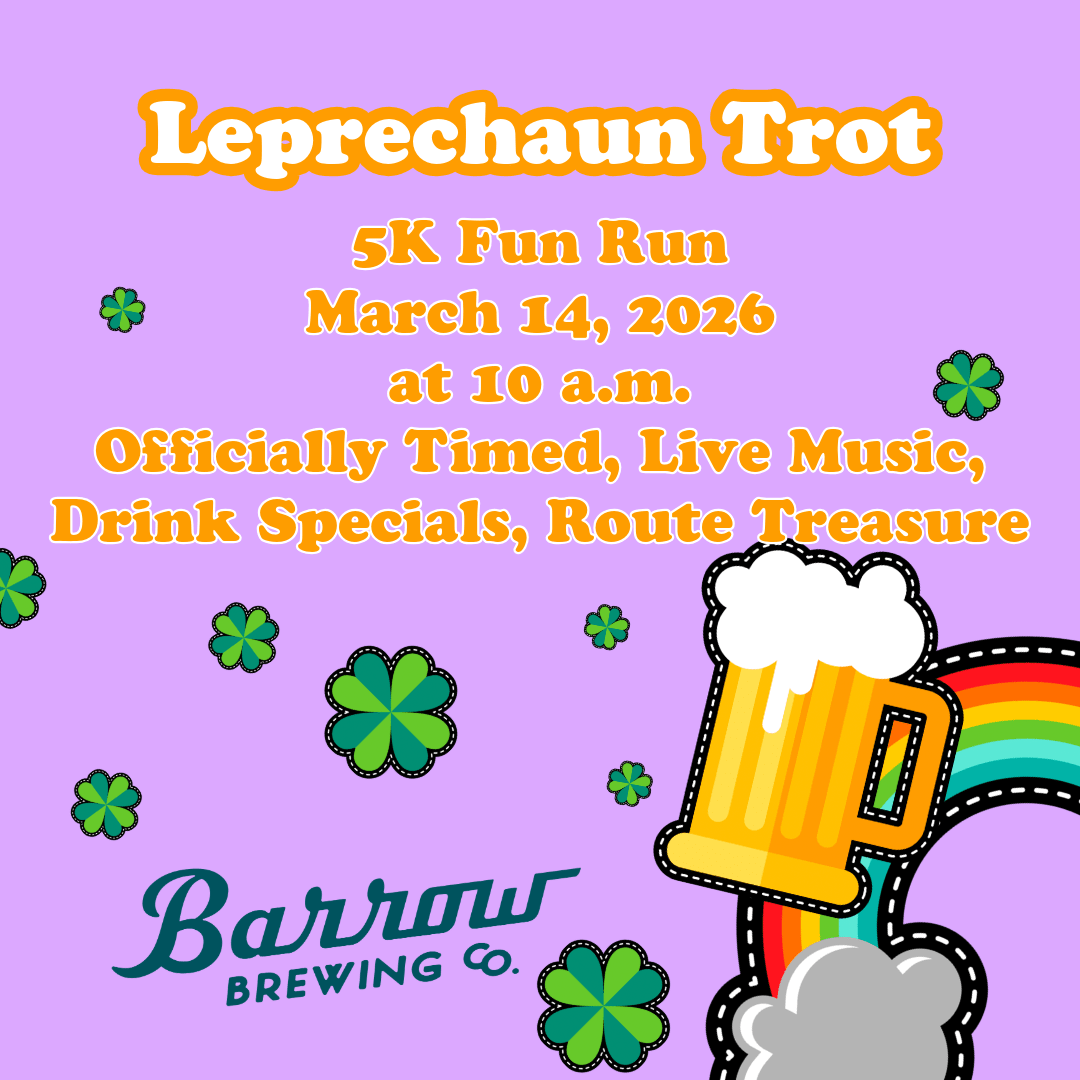 Join us at Barrow Brewing Co for this fun 5K that includes live music, craft brew specials, and prizes hidden along the route. The race will be officially timed by Pro-Fit Race Timing. Participants receive a t-shirt, craft beverage (NA options are available for those under 21), and the chance to find 'leprechaun treasure' along the way. Salado, Texas is a beautiful Village located in Central Texas. The route, which starts and ends at the brewery, will take participants through historic downtown Salado. This 5K is walker and dog friendly but due to a large hill with steps, I would avoid bringing a stroller. Packet pick up will be at the brewery on Friday night 5-7 p.m. and Saturday starting at 8 a.m. Same day registration, if not sold out, will also begin at 8 a.m. Please register by 3/1/2026 to be guaranteed a t-shirt! The Barrow 5K medals for 2026 are so cool and interlock with the other 5K medals from the series. You're going to want to collect all three. Route: https://www.mapmyrun.com/routes/view/6667892327/ https://runsignup.com/Race/TX/Salado/BarrowLeprechaunTrot