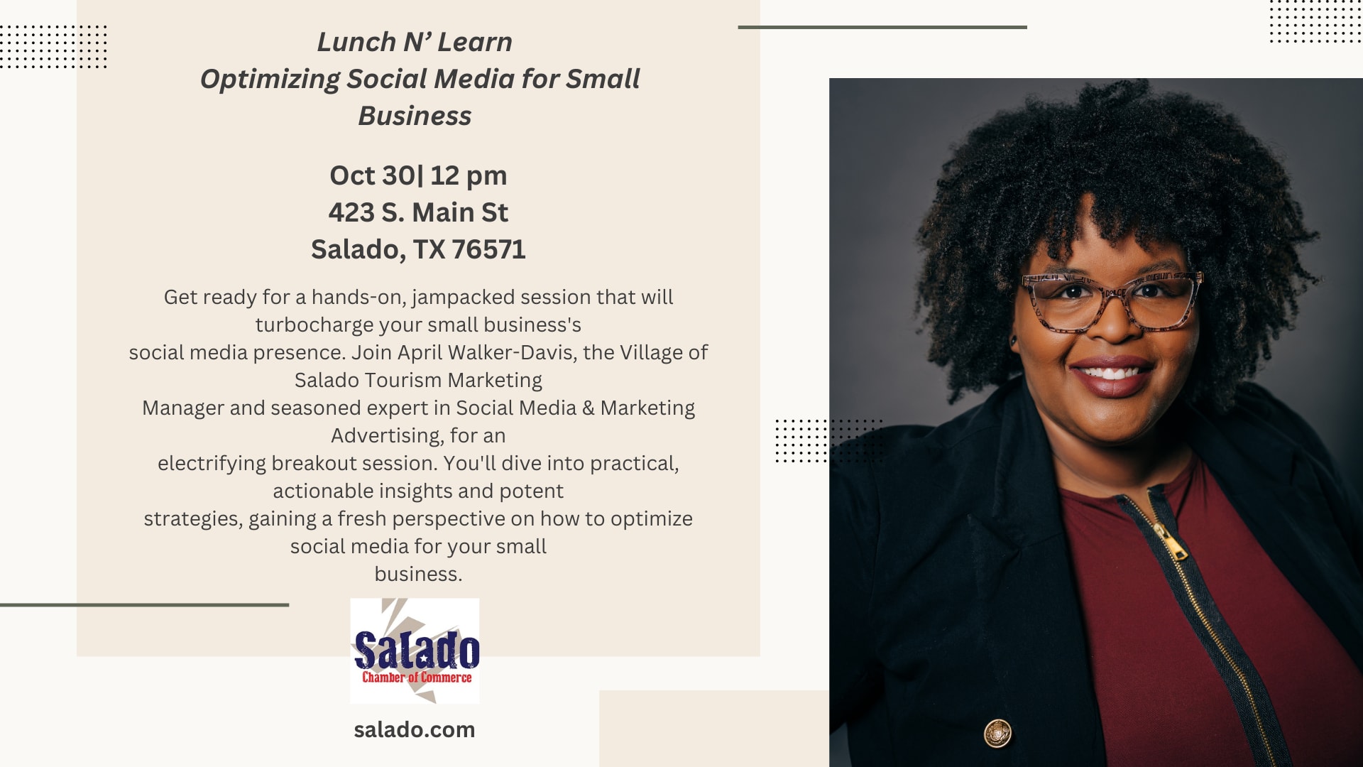 social media presence. Join April Walker-Davis, the Village of Salado Tourism Marketing